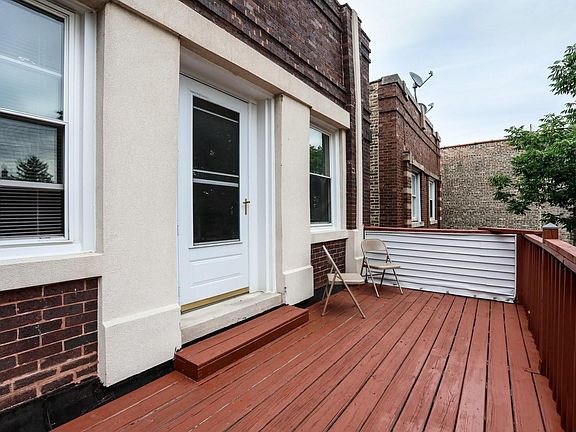 Newly refinished hardwood floors throughout unit at the top floor of building. Fresh coat of the most non-toxic, child-friendly product on the market. Redone backsplash, with new granite countertops with kitchen appliances. A balcony with a street view of Irving Park Road right off of your living room to host a couple of friends on a nice warm day. Back yard is shared with all tenants. Landlord lives within the building and is invested in keeping your living quarters and the building comfortable and functional. You will be within a 10 minute walk to 6 corners (the original 6 corners), and in the opposite direction are less than 10 minutes of away from wonderful Portage Park and its amenities. I-94, the Irving Park Blue Line, and two Metra line stops are all a 6 minute drive away! Owner pays for water. Gas, Light, and Internet paid by tenant under their separate account. First month's rent plus a month's rent security deposit at signing of 1 year rental agreement. $50 Application fee & BG check. Non-smoking in the building and in units also. Non-permit parking off the street is available; garage parking an option with an additional $100/mo+ to rent contract. Limit 2 small pets (15 lbs. each).