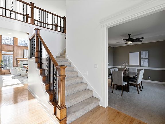 Privacy abounds on this .73-acre cul-de-sac lot that backs to the woods and a small meandering creek. Great curb appeal and an impressive 19' entry welcome you to over 6000 sf of beautiful finish in the 2-story home with sunroom and walk-out LL. PLUS space for 5 cars (totaling 1898 SF) - both the attached 3 car & the detached 2 car have heating and cooling. The entry is flanked by a living room and a formal dining room. The 2-story great room boasts gorgeous millwork, windows, built-in cabinetry, and a fireplace - a catwalk on the 2nd level looks over this rm. The large kitchen features hardwood flooring, island, under & over cabinet lighting, quality appliances including double ovens, & a gas cooktop. The sunroom is a favorite spot for enjoying the views & relaxation & provides access to a maintenance-free deck. The 1st floor office features floor-to-ceiling built-ins. A guest powder rm, pantry closet, mudroom with cubbies, large laundry rm, and coat closet complete the main level. The primary suite includes a 2-sided fireplace, Kohler whirlpool tub, ceramic tiled shower, double sinks, & closet space that is sure to impress. 3 additional guest bedrooms each has direct access to bathrooms. The walk-out LL boasts a family room w/fireplace, wet bar, 5th bedroom, bathroom, great theatre room, and a large storage room. Other amenities: new roof on the house and the additional detached garage in 2022, one new A/C, irrigation, surround sound, security, & water softener.