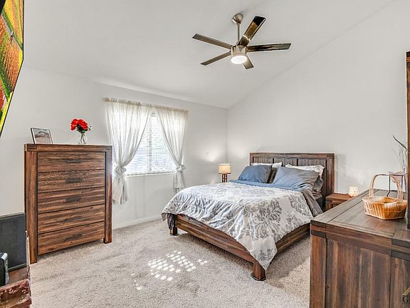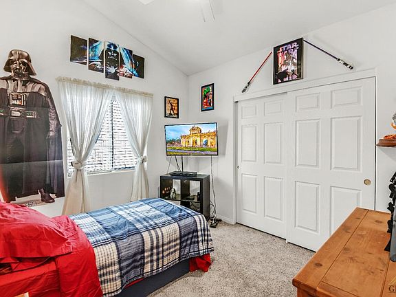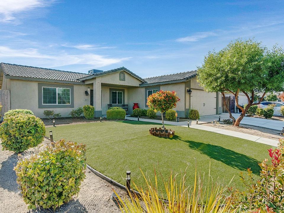 Welcome home to the gated community at Tyner Ranch 3. This 3 bedroom 1 3/4 bath home is loaded with upgrades. You will see the pride of ownership throughout the home. Open concept makes hosting all your gatherings a joy. Home features an indoor laundry, granite countertops, extra cabinetry, ceiling fans throughout, covered patio extending the entire backyard and surveillance system! Low maintenance front and back yards include artificial grass, 2 deck areas, fruit trees (orange, lemon, lime & kumquat) and for those golf enthusiasts even a putting green. Close to the neighborhood park, schools, freeway and shopping. Don't let this beauty pass you by. Schedule your private tour today!