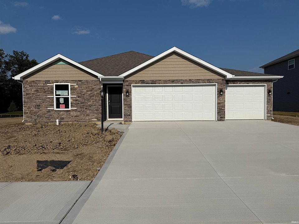 Discover the Freeport, a cozy and efficient ranch home offering smartly designed living space in COMMUNITY. Featuring a 3 car garage. Inside, an open concept layout creates a seamless flow between the kitchen and spacious great room - perfect for everyday living and casual gatherings. The kitchen features a Elkins white cabinets, lyra quartz countertops, stainless steel appliances, convenient pantry, and generous counter space. The primary suite offers a private retreat with a comfortable bath and walk-in closet. Featuring a white marble dual vanity sink and walk-in shower. The second bath features a large tub shower while the three additional bedrooms provide flexibility for growing families, guests, a home office, or hobby rooms. The conveniently located laundry room makes chore day easy with plenty of additional storage. Relax outside with the rear concrete patio overlooking a large backyard. The expertly designed exterior features a sodded yard, landscaping package, rockaway grey vinyl siding, black shutters, brownstone shake, and boulder trail stone. Includes Smart Home Technology allowing you to monitor and control your home from your couch or from 500 miles away and connect to your home with your smartphone, tablet, or computer. The Freeport is the perfect place to call home. Call today to see for yourself! Photos representative of plan only and may vary as built.
