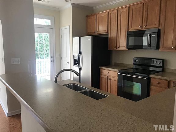 Beautifully maintained townhouse nestled between Brier Creek and Crabtree Valley! Home features 4 spacious bedrooms, including first floor master/in-law suite. Second master on third floor. 1 car garage. Main living area boasts hardwood floors throughout, fireplace in living room, and separate dining room. Kitchen features upgraded cabinets, built in Microwave, and two pantries! Decks and Patios galore! W/D included. AMAZING community amenities featuring pool and fitness room. Sorry, no pets.