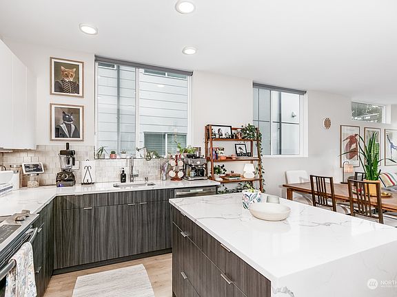 NO HOA! This stand-alone Home has all the features you could want in an Urban Lifestyle.3BDS/2.5BA.This 1630SQFT home is spacious. Open concept kitchen & living space w/ lots of rm for dining, entertaining, & space for your oversized furniture, huge windows & tall ceilings make this area light filled, bright & spacious. Quartz countertops w/waterfall island, all appliances stay. Primary Suite features a large bedroom w/dual closets, separate shoe closet, ensuite w/ walk-in shower & heated floors, private balcony, tall ceilings & laundry room.AC, Private off street parking, fenced front yard, walkable & conveniently located near tons of restaurants, golf course & parks.15 mins to downtown Seattle. Freshly painted interiors.
