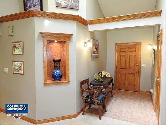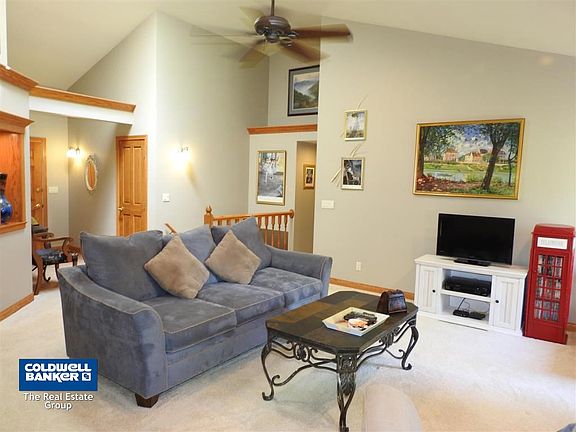 Stunning home w/all the quality you could want. Master suite w/tray ceiling, large walk-in closet & full bathroom w/good storage. Additional 3 bedrooms are large w/great closet space. Beautiful crown molding fills the house surrounding the windows, plant shelves & displays areas. Very functional kitchen w/ceramic tile, custom cabinets, center island & tons of storage. Walk out the dining room patio doors to the beautiful covered deck.Features gas fireplace w/oak mantle, 1st floor laundry, partially finished basement w/access to the 3.5 car garage, beautiful yard located on a dead end street.