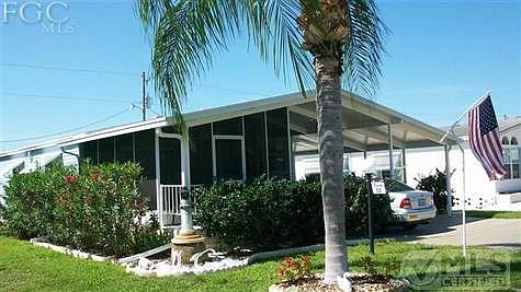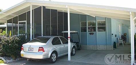 Beautiful well kept 2/2 unit in the desirable over 55+ community.All on one level..NEW roof and vents in 2010, NEW Pergo flooring throughout, NEW kitchen appliances including disposal, front screened lanai with ceramic tile, central air with humidistat and nine (9) additional ceiling fans with two on the lanai itself. NEW window treatments(blinds and curtains) NEWER awnings, NEW hurricane straps and gorgeous landscaping. This also includes a sprinkler system. Also is a nice shed attached to the rear of the home and an attached carport big enough to accommodate two vehicles and golfcart. Front kitchen comes equipped with dishwasher, pantry, refrigerator w/ice maker, bar feature,cooktop stove and double sinks. Separate laundry room with washer/dryer. Master bedroom has double closets, and walk-in shower in bath. Both baths have skylights and all is gfci protected. For that extra quality workmanship crown molding throughout. Brokered And Advertised By: Estero Bay Realty, Inc Listing Agent: Phyllis Gouker