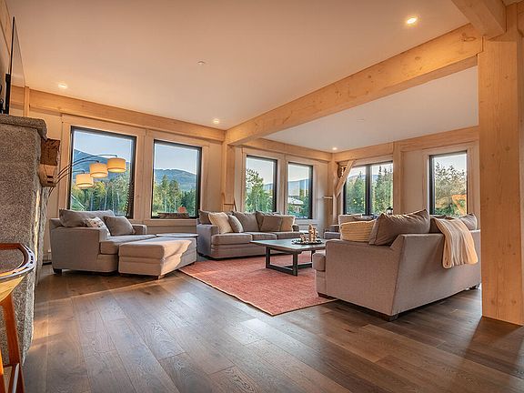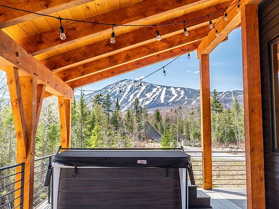 Incredible, contemporary home featuring breathtaking, year-round Sugarloaf views. Offering the ultimate blend of modern amenities and warm, carefully curated touches. Wide plank engineered oak floors, custom stone fireplace, walnut cabinetry, quartzite countertops, exposed beams, luxury baths and plenty more. Great deck space - 34 ft. timber frame porch with composite Trex decking, state of the art Marquis hot tub and room galore for grilling, games and outdoor lounging. Well landscaped yard with paved driveway, covered entryway and 1 car garage with sealed flooring. Solar power and high efficiency upgrades throughout. Convenient, easy access to the slopes - just a 5-minute ride to the base of SuperQuad. One of a kind and absolutely gorgeous.