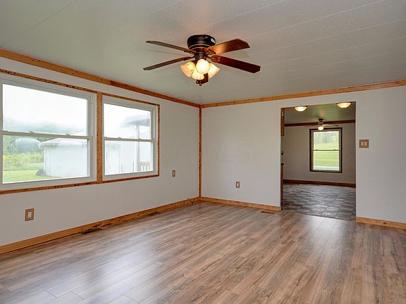 Pretty location for this Licking Valley home with beautiful country views. Large updated and open kitchen with eat-in space and ample cabinets. Living room and additional family room allows for great living spaces and first floor laundry. Updated flooring, new carpet, fresh paint and new updated bathroom. Spacious 2+ car detached garage and large, flat yard.