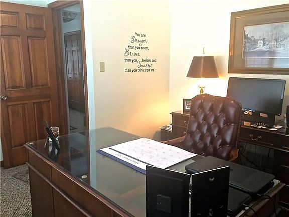 This custom built home has a great floor plan & is ready for you with freshly painted walls, new carpeting and ceramic tile. You will find the office which features a bay window off the entry. The family room has a log burning fireplace with gas starter. The kitchen area has a moveable center island, granite counters, newer appliances, a large pantry and sliding door to back patio and pool area. Second Floor master suite has a large walk-in closet and a private full bath with jet spray tub. You will also find 3 additional bedrooms, a full bath and the laundry room conveniently located on the second floor. The unfinished lower level would make a great gym and there is an area plumbed for a full bath. Oversized 2 car integral garage with lots of storage. The fenced-in pool area is a perfect space to entertain family & friends & the backyard beyond the fence would be a great spot for a swing set or fire pit. Conveniently located near 79, 376, Robinson Mall, Airport & Downtown Pittsburgh.