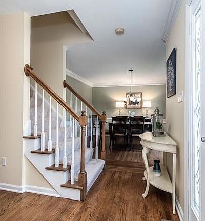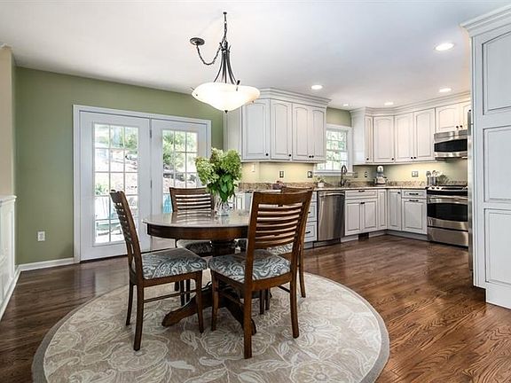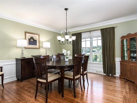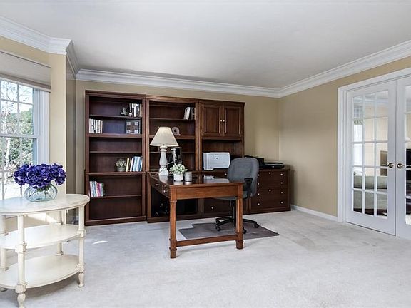 So much natural light throughout this spacious & updated custom Treesdale home. Gleaming hardwood floors, & crown moulding welcome you into this inviting space. Dining room large enough for entertaining & a private office/den w/bay window & french doors. You will love the eat-in kitchen appointed w/beautiful Maple/glazed white cabinetry, stainless appliances & granite counters. The family room has a dramatic gas fireplace & oversized windows keeping the space light & bright. French doors open to the private brick paved patio w/wooded backdrop. Enjoy your spa style master suite with cathedral ceiling, walk-in closet & fabulous updated bath w/pedestal tub, walk-in shower, and granite topped double vanity. Two add'l bedrooms w/custom closet organizers & built-in desks. A third well sized bedroom & fully updated bath finish the second level. Lower level space features built-ins & another full bath. Situated on +/- half an acre. **Please click on VIRTUAL Tour Link for LIVE WALK-THROUGH!