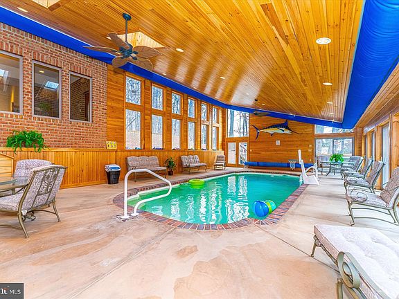 One of a kind contemporary design. 7,300+ s.f. of finished living space. Enjoy your morning coffee on the large covered front porch. Grand stairway off foyer & spiral stairs to lower level. Incredible oak trim throughout. Large rooms. 6'6" deep saltwater indoor swimming pool. The pool is heated with propane and the room has a desert air unit to control humidity. Beautiful cedar walls throughout to enjoy year round for therapy or fun. Detached garage w/usable office area or 5th bedroom above. Private but close to Frederick & commuting. New washer and dryer. Total above grade finished s.f. is 5,738 which does not match the tax records. Storage below the detached garage is 336 s.f. storage under the pool room is 300 s.f. Covered patio and deck area is 1,408 s.f. Uncovered deck area is 2,528 s.f. Patio brick paver is 1,080 s.f. Total linear feet of railing is 400+. In the last thirty days all hardwood floors have been refinished, entire house including all closets have been freshly painted with tasteful light color. All kitchen appliances are brand new and top line. Every aspect is ready for your immediate occupancy in this wooded masterpiece!