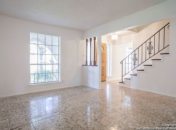 Beautiful two story Spanish style 4 bedroom 2.5 bath. Upgrades; new kitchen counter tops, shower and flooring. Marble floors throughout lower flooring. New dark wood look stairway step design. New carpet in all upstair bedrooms. Backyard full decking perfect for entertaining or family barbeques with working jaccuzzi and a relaxing rain water garden. Back yard that will take your breath away. Four majestic Oak trees, 3 large mesquite trees all on a 1/3 of an acre. A feel of outdoor serenity,