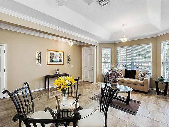 - Interior Features: Ceiling Fans(s), Eating Space In Kitchen, Master Bedroom Downstairs, Split Bedroom, Stone Counters, Crown Molding, Kitchen/Family Room Combo, Living Room/Dining Room Combo, Window Treatments, Tray Ceiling(s)