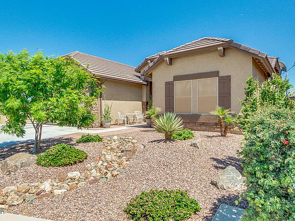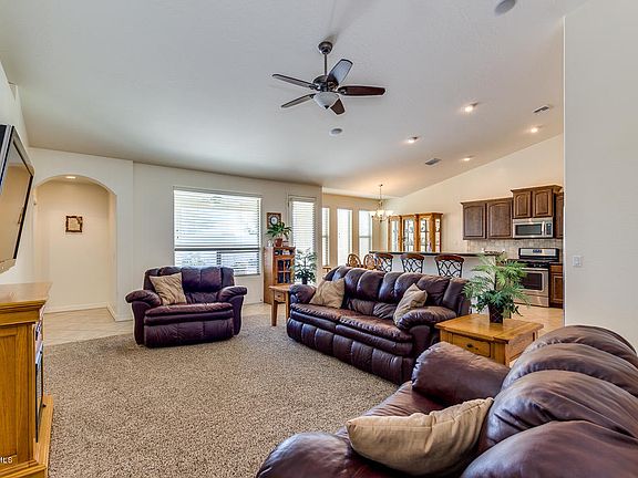 Situated on a Premium, Oversized Lot with Only one Neighbor siding to a common area with Spectacular Mountain Views Featuring Split Great Room Floor Plan with Lots of Diagonal Set Tile, Vaulted Ceilings w/Plant Shelves, 2'' Blinds, Surround Sound with In-Ceiling Speakers, Eat-In Kitchen with Island/Breakfast Bar, Granite Slab Counters w/Tumbled Travertine Backsplash, Raised Panel Cabinets, Stainless Steel Appliances Including Gas Range & Built-In Microwave, Utility Sink in Laundry Room, Raised Vanities with Double Sinks, Separate Shower/Tub, & Dual Sinks in Laundry Room, Oversized Secondary Bedrooms, Covered Patio with Fan, Large Backyard Nicely Landscaped, Storage Shed, RV Gate w/Concrete Pad Front & Back, Sunscreens, Utility Sink & Service Door at 2.5 Car Garage & More.