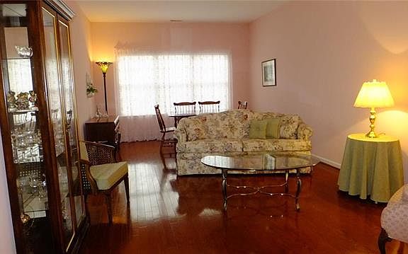 Welcome to 5019 Valley Stream Lane in the carefree gated community of Wild Cherry Knoll. This is a 55+ development for active adults, offering the ease of home ownership on one level with no outside maintenance. This lovely home has a larger welcoming foyer that leads to an open concept floor plan of a living room dining room combination that has beautiful hardwood floors in most areas. The kitchen is spacious with dining area and slider that opens to an outside patio. The master bedroom has ample closets, larger master bath with separate shower, soaking tub and double bowl sinks. There is a 2nd bedroom and nearby full bath. The 2 car garage has access inside through a laundry room that also has a laundry sink and extra room for storage. The monthly condo fee includes lawn care, garbage removal, snow removal, clubhouse amenities with that include a fitness room, meeting rooms and more. Enjoy the carefree lifestyle in this premier community.