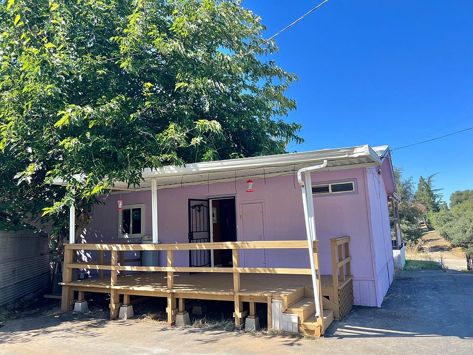 Welcome to an enchanting property that combines functionality, charm, and an array of delightful features. Nestled amidst nature's beauty, you'll find a 3/2 manufactured home complemented by an open floor plan with secluded master and ample storage. Outside is a lovely fire pit, perfect for cozy gatherings and memorable evenings. This property also offers a detached storage unit providing a separate space for work or creative endeavors. Adjacent tothe mobile home, you'll discover a convenient out-house, offering additional flexibility and convenience. Enjoy the outdoors on the inviting porch, ideal for relaxation and enjoying the serene surroundings. A roughed in road leads you up to a picturesque pad, offering endless views & possibilities for expansion or the creation of an additional dwelling. Immerse yourself in the soothing sounds of a seasonal creek and embrace the tranquility it brings. The driveway is paved and gated to ensure privacy and security, while the property's elevated position provides a stunning view of breathtaking sunsets. This idyllic retreat allows you to escape the hustle and bustle of everyday life and immerse yourself in the serenity of your surroundings. The location provides cooler summer nights and is less than an hour from Kings Canyon/ Sequoia & the Central Valley. Come see it while it lasts. Buyer to verify bed count, bath count and sq ft.