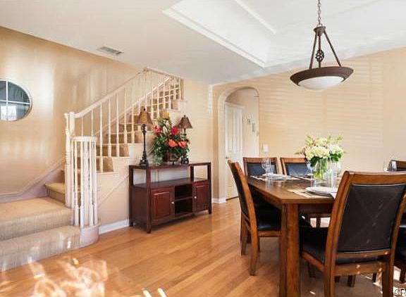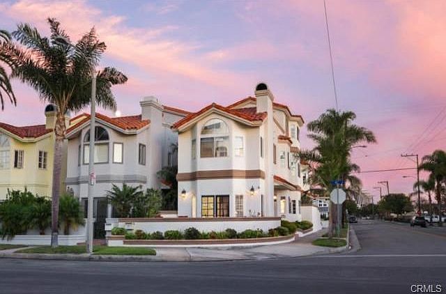 This three story Mediterranean home sits on a corner lot just four blocks from the ocean. The family room has a beautiful bay window seat, guest bathroom, and access to your back patio with custom built-in BBQ as well as your attached two car garage with storage. The open concept leads to your updated kitchen with granite countertops, a walk-in pantry, and a breakfast bar. Past the kitchen is your formal dining room and living room with it's gorgeous gas fireplace and access to the front patio. On the second level are three large bedrooms with full bathrooms, and conveniently located laundry room. The first bedroom lined in built-in shelving has plenty of natural light pouring through bay windows. The second bedroom has a private patio and vaulted ceilings. The owner's suite is an oasis of raised ceilings, bay windows, a skylight, handsome fireplace, and custom built-in storage. The master bath offers dual vanities, large Jacuzzi tub, and a walk-in closet. On the top level is yet another large bedroom with vaulted ceilings and a full bathroom with walk-in shower. You have access to the rooftop balcony with hot tub and view. This is a short walk to the shops and restaurants of Main Street, the dog beach, farmer's market, and highly rated local schools.