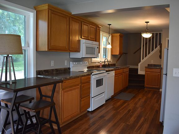 Check out this great starter home or retirement home. Your new kitchen, tiled bathroom and cozy living room has been completely remodeled right down to the studs (including insulation). New windows throughout the house. You can enjoy your main floor bedroom and great big beautiful corner lot. Relax and enjoy sitting in your 3 season porch that attaches your garage and home. Walk thru room upstairs can be used as bedroom or office.
