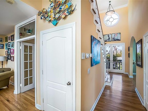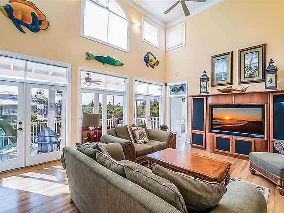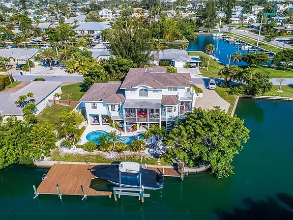 Come check out your little slice of paradise, located in Holmes Beach's prime residential neighborhood. For the fisherman, you will love the 'wrap-around' canal on 2 sides with ample dockage for vessels, a 12,000 pound electric boat lift. The home sits on almost a quarter-acre lot surrounded by nature with mature landscaping. Enjoy the ground pool and heated spa to relax after a long day of fishing. Enter into the foyer with the center point being the grand staircase. Enjoy the very high ceilings and natural light that comes through. The formal dining and living room features crown molding and wood floors. The kitchen and family room accompany each other allowing an effortless entertaining environment. The huge master bedroom features his-and-hers bathroom, with sitting areas, deep soaking tub, shower and separate facilities for toilet and bidet. Upstairs are three bedrooms and a bath for family or guests. Ground level hosts a two-car garage, game room, and additional storage space. Relax and watch the beautiful sunsets on the screened in porch overlooking the canal.