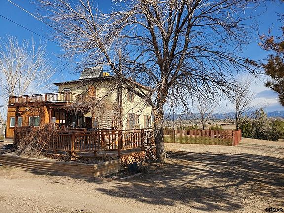 Stunning Views of the surrounding mountain ranges is what you will find once you step onto this Hobby farm/ranch. This updated 2 story home boasts updates and more updates throughout the home to include the kitchen, bathroom, and flooring. The kitchen offers a center Island for added counter space. There is a built in oven and microwave, a dishwasher, stainless steel Range/Oven and a Refrigerator. Decks on both top and bottom levels allows for you to enjoy the cool evening breeze while taking in the amazing views. Mature landscaping, a Koi pond, fruit trees, and an area for a large garden area with a greenhouse are all added bonuses. There is over 2 acres of irrigated hay field if you so choose and a drip system to the trees and shrubs. 14' x 30' pavilion, 18' x 20' shop/garage, and 30' x 36' barn with separate electrical service. Plenty of space for RV parking and other toys. Property is completely fenced and is 2 separate lots totaling approximately 7.46 acres. all conveniently located just 2 blocks from Colorado State Highway 115 for easy commute to Colorado Springs, Pueblo, or Canon City. What are you waiting for??? No showings until the 12th.