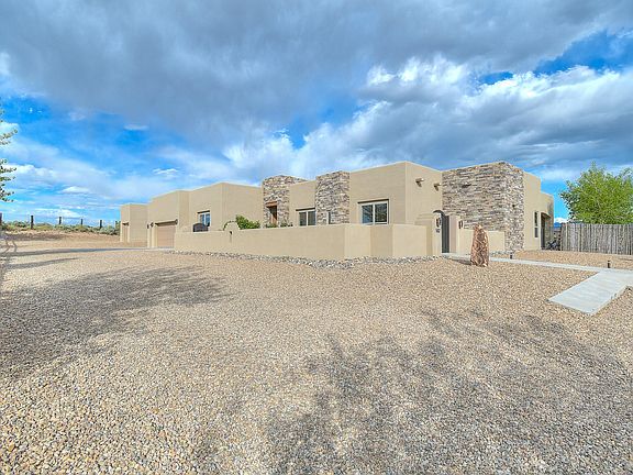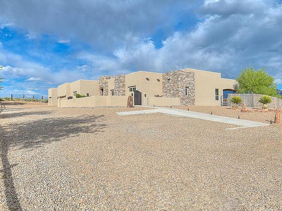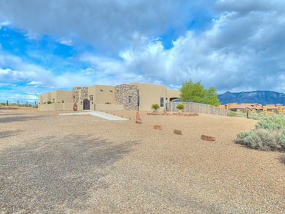 Welcome to this Stunning Custom Built home by Abrazo in Corrales. This wonderful floor plan features a large open living room, 2 master suites, and a game room with wet bar including a beer & wine cooler. Gourmet kitchen offers cherry wood cabinets, granite counters and Kitchen Aid Gourmet Series appliances. Auxiliary bedrooms share a Jack & Jill bath. Master suite is spacious and offers patio access, a luxury master bath, and large walk-in closet with access to the laundry room. Secondary master bedroom features a full bath and a private entrance. Relax on your back patio with a built in BBQ Grill, and stunning Sandia views. 3 car attached garage and 4th detached garage for the extra toys or makes a great workshop. Offered by the original owners, this home is a 10!