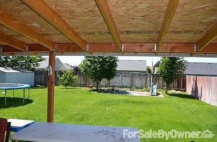 THIS HOME HAS MANY UPGRADES:Tile in the Kitchen/Dining AreaGranite Tile in the Master BathroomExtra Large Covered PatioStorage ShedFruit TreesTimed Underground SprinklersTiled backsplash in the kitchenInsulated GarageIt has a designated sandbodx/swing setPrice is negotiableAdditional property info: http://www.forsalebyowner.com/listing/G5ET3?provider_id=28079