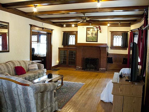 If you have an appreciation for the wonderful personality of homes from years gone by you will appreciate the touches in this house the first builder added. Starting with the coffered ceilings in the living room and dining room. The natural oak woodwork is out of the normal even for its day. The fireplace in the living room has been turned into gas. The built-in bookshelves have the original leaded glass. Hardwood floors and oak trim through-out. The kitchen is extra large. 2 bedrooms on the main floor and a loft with skylight and 2 bedrooms upstairs. 2 full baths. The basement has a finished area great for a workout room. The wide front porch will provide many mornings or evenings to relax and enjoy the neighbors. A back deck has been added also. A picket fence surrounds the back yard. A must-see home.