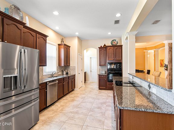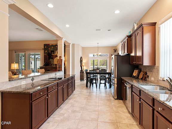 Immaculate Home Located In The Highly South After Community Of Palmetto Trace! This Amazing 3BR/2.5 BA Home With Office Is Perfect For Those That LOVE Entertaining! Large Sliding Glass Doors Lead You To the Incredible Back Yard Featuring Newly Built Oversized Screed In Lanai With Beautiful Pavers Surrounding The Newly Installed Grecian Style Gunite Pool Making Outdoor Living A Breeze. Additional Exterior Features & Updates Include: New Vinyl Fencing Enclosing Entire Back Yard, Custom Built Outbuilding, New Sod & Irrigation For Entire Yard, 7 New Palm Trees, Exterior Painting, Large Lot Overlooking Stocked Pond Feed By Natural Spring. The Interior Offers 10ft Ceilings, Open Spilt Floor Plan, Spacious Gourmet Kitchen With 42'' Solid Wood Cabinetry, Tile Backsplash, Granite Countertops, Brand New GE Profile Stainless Appliances, Breakfast Bar & Eat-In Kitchen, Butlers Pantry & Stunning Tile Flooring. Primary Suite Has Garden Tub, Separate Shower & Double Vanity. All This Only A Short Distance To Pier Park Which Is Loaded With All The Shopping, Restaurants & Entertainment Anyone Could Ask & The Amazing Beaches Of Our Emerald Coast!