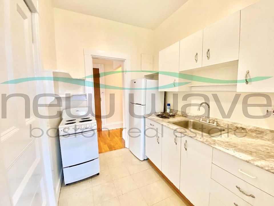 Large, spacious unit glowing with natural daylight, hardwood floors, white kitchen, huge bedroom, 2nd room can be utilized as a guest room or office or small bedroom, green porcelain tiles in bathroom, on-site super who maintains many units, large closet space, overlooks Beacon, on-street residential parking metered. Shows very well.