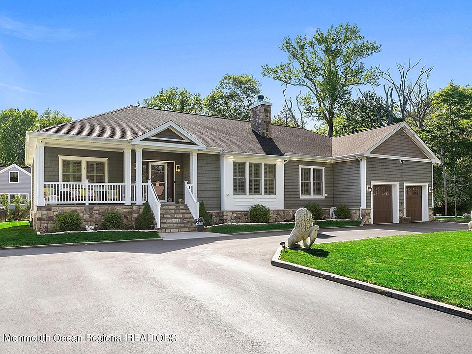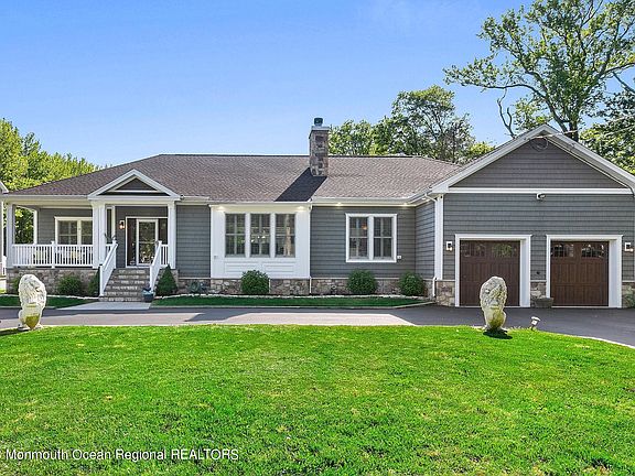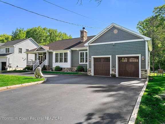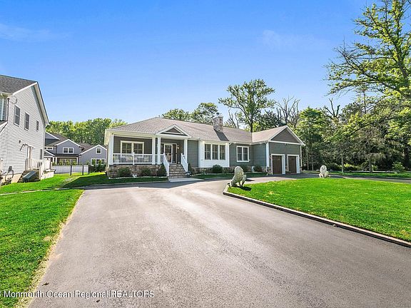Fall in love with this custom 3 bedroom 2.5 bath ranch in the much sought after community of Oceanport known for its parks, top rated schools, Monmouth Park Racetrack, rivers and close proximity to Beaches. Featuring a wonderful open floor plan, custom kitchen complete with Kitchen Aide appliances, double oven, large center island, flows nicely into the living room with recessed lighting, double sided fireplace, Dining Room with custom trim. Spacious primary bedroom with Cathedral ceiling, walk in closet, spa like bath, shower stall w body sprays. Elevated custom rear deck complete with pergola, pvc decking and rails for easy maintenance, over looking backyard with plenty of room for a pool. Conveniently located near shopping, restaurants, highways, GSP, NJ Transit, Ferry service to NYC.