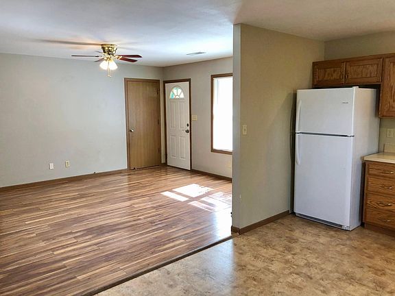 This listing is for unit B at 502 Central Ave in Hoyt, KS. Unit has 3 beds, 1 bath, attached 1-car garage, and laundry room with hookups. $900 per month, one month's security deposit. Renter responsible for utilities and lawn maintenance for their unit. Small pets allowed; subject to additional deposit.