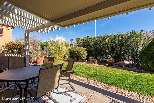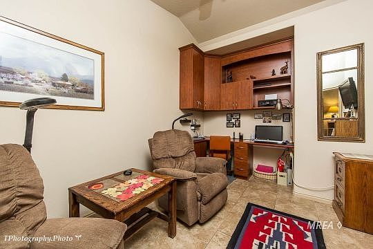 Located behind the gates of Highland Fairways this move in ready home is waiting for you!! This 3 bedroom/2 bath home has nice upgrades and there's still plenty for you to customize to your own taste. The living room has a built in entertainment center with room for your large screen TV, media equipment and decorative items. There's plenty of cabinet space in the kitchen with attractive glass back splash and a great counter for you and your guests. The dining area has warm laminate wood flooring which compliments the kitchen cabinets. The 3rd bedroom has tile flooring and has been converted to an office complete with built in desk. Enjoy nice sunny mornings under your covered patio in your southeast facing back yard. The established hedges give plenty of privacy too.