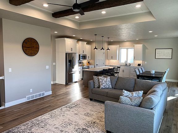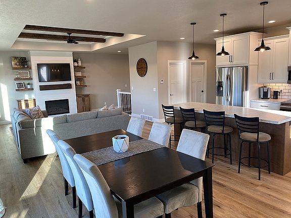 Don't miss your opportunity to own a house located in the Ridge development! The open concept is complimented by custom cabinetry, a walk-in pantry, and 9-foot ceilings throughout with a 10-foot accent ceiling in the Great Room. All bathrooms feature onyx countertops. This home is equipped with a finished basement, heat pump, electric fireplace, lawn sprinkler system, Wi-Fi garage doors, and a 3-stall heated garage. This home is ready to go.