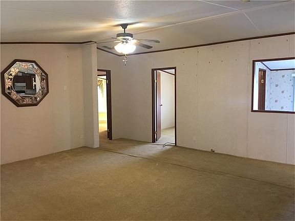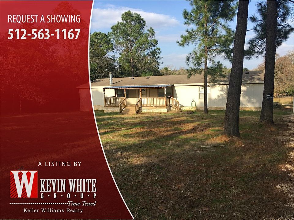 This spacious 4 bedroom/3 bath 2,356+/- sq. ft (BCAD) home is located on 20+/- acres in a rural & charming setting. Inside is an open floor plan with a large living room and a great sized kitchen that offers lots of storage and opens to the dining room. Master bedroom offers two walk in closets, double vanity in the bathroom with separate shower and tub area. In home office that could be used as fifth bedroom. Large covered front and back patio as well as 12x8 storage shed and 2 car carport.