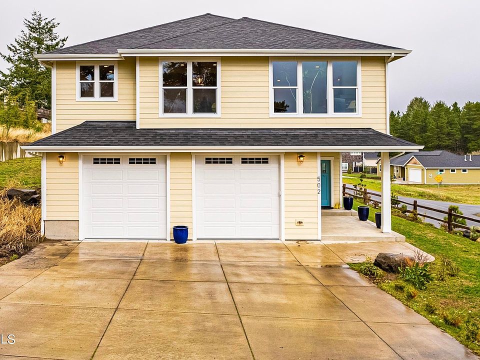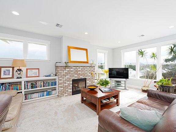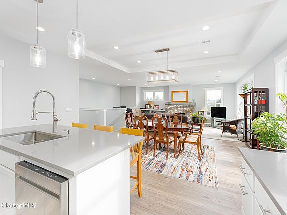 Fabulous reverse floor plan on this newer construction home situated on a spacious corner lot. Top floor features a great room layout + the primary suite. Island kitchen is light & bright with white cabinets, quartz counters, a gas range & stainless steel appliances. Living room has a gas fireplace & built-in shelves. Primary suite has double sinks, large tile shower and walk-in closet that opens to laundry room. Main floor has 2 more bedrooms & full bathroom.