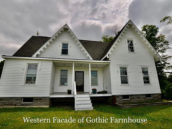 Charming details, completely renovated 2 story Gothic Style Farmhouse with amazing features! Main Lvl features Large Open Concept Kitchen/Dining area into Living room with wood burning Fireplace and pocket doors to the Den, half bathroom off hallway to oversized garage completes the first level. Great staircase up to wide open hallway with skylights on second level. 3 Large Bedrooms and a Full Bathroom with decorative Barn Door Sliding Door. Full Bath has Double Vanity and Ceramic Tiled Walk-in Shower. Cement basement and upgraded mechanicals. Attached oversized 2 Door Garage has an area above that has potential to complete. Separate Garden Shed for storage and Wood Shed complete with an outdoor boiler. This properties parcel will be subdivided into a 2 acre lot and will be surrounded by farm land. Location is Cayuga County with an easy commute to Ithaca, Cortland, Auburn and resides in the heart of farm country in the Finger Lakes region of NY.