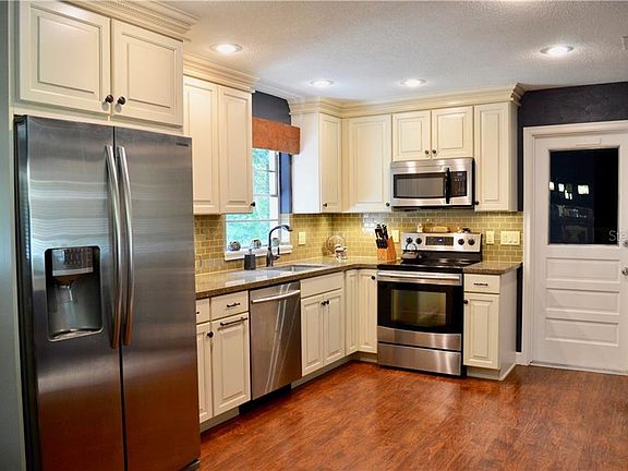 Welcome home to this stunning 3 bedroom, 2 bath solid block home located just over a mile from Stetson University and Downtown DeLand!! This home is turn-key and very well maintained and ready for a new owner. The kitchen has been fully remodeled with new cabinetry, recessed lighting, stainless steel appliances, beautiful subway tile backsplash, and solid surface countertops. Other updates include both bathrooms, HVAC, wood laminate flooring, painting and lighting throughout the home, and so much more!! With close to 1,700 sq feet of living space and separate living and family areas, it's a wonderful floor plan for just about anyone. It's also located close to International Speedway Blvd for easy access to shopping, restaurants, and approximately a 30 minute drive to Daytona Beach!
