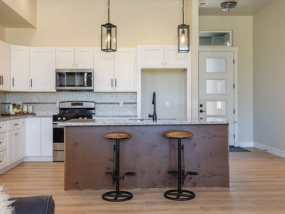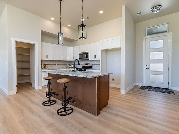 This NEW home has ACTUAL VIEWS of the Grand Mesa, enjoyed from walls of windows in both the primary bedroom and the open concept living, dining, kitchen areas. With tall ceilings and a cozy fireplace, the lucky homeowners of this property will enjoy views and privacy, as the home already includes both sides of 6' vinyl fencing. Quality of craftsmanship is noticeable in this home by award-winning Alta Home Builders, and details such as a stepless primary shower and widened hallways and doorways, garage floor epoxy and a lovely warm wood island capture attention. The primary shower enjoys dual shower heads, including a massive rain head and stylish tile accents. Beautiful granite countertops, soft-closing cabinetry, and luxury vinyl plank flooring throughout are just a few of the upgrades that come standard in an Alta home. You will love the thoughtful lighting design throughout the home and ample storage in a walk-in pantry. Extra parking is available along the side of the home.