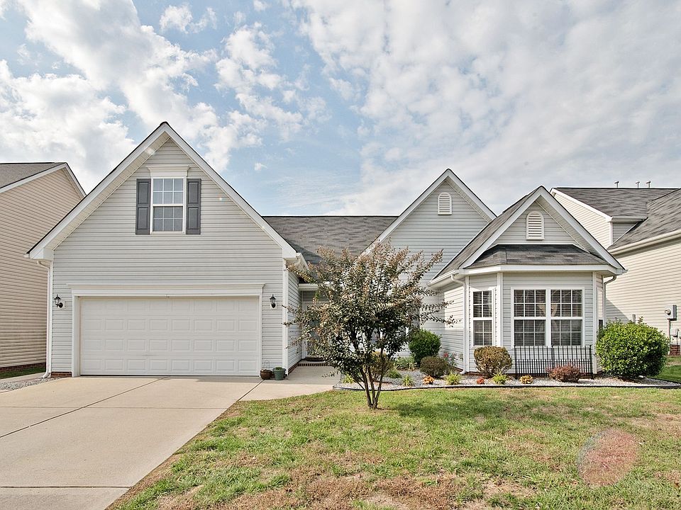 Adorable split bedroom ranch with bonus/bedroom above garage. Kitchen boasts granite counter top and 42" cabinetry. Walk in pantry. Tile back splash. Stainless appliances (4 years old). Refrigerator does not convey. Living space has beautiful laminate flooring, gas log fireplace, vaulted ceiling and surround sound. There is a 15x15 covered porch with vinyl windows and tile floor for additional living/relaxing area that can be enjoyed almost all year round. Master has been updated with large walk in shower, seat bench and grab bar. Separate water closet. Large walk in closet. Raised dual vanity. Linen closet.New carpet in master bedroom. Level front and back yard. 8x8 Storage building conveys with property. HVAC system replaced in 2017. Easy access to Concord Mills and major interstates.