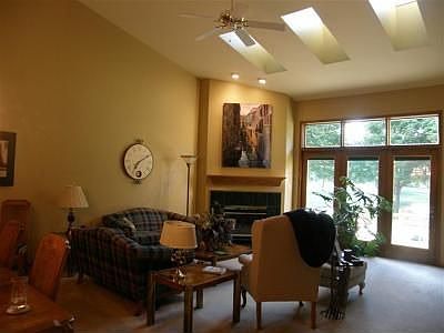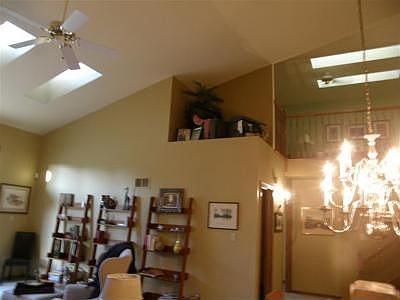 This is the one you have been waiting for. One owner home ON THE POND!Open concept for easy living.Great room features vaulted celling 3/skylites/gas fireplace/pella windows w/slim shades. Formal dining room space. Access to large patio.Endless views of pond and grounds. Master suite faces pond/walkin closet master bath, whirlpool tub & seperate shower/fireplace. Skylites in bedroom. Eat in kitchen has Hickory cabinets, 2 w/leaded glass doors. All appliances remain, water purifier under sink .Dinette is charming (Bow window).Upper has 2 bedrooms/3/4 bth one bedroom has circle top window & 2 closets. 2nd has pull down floored attic access. Attic has vent fan. Anderson windows .All solid 6 panel doors. sprinkler system-T.V. In master stays. Steps to the golf course. HSA home warranty. Assn does grass &irrigation bush & tree triming & replacement. snow removal,gutter cleaning, exterior window cleaning, roof maint& replacement,Pond&fountain maintenance,exterior painting ALL FOR $165MO