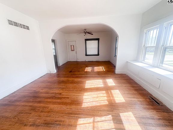 Charming Corner Lot Home w/Hardwood Floors & Potential! Discover the possibilities in this inviting corner-lot residence—rich in character & offering a solid foundation for those ready to customize & make it their own: Main Level with Character The living & dining areas are beautifully defined by an archway & showcase original hardwood floors. A sunny bay window with a built-in window seat in the dining room creates a focal point full of natural light & charm. Bedroom Comfort Two well-proportioned bedrooms feature solid wood floors and share a convenient Jack-and-Jill bathroom with an adjoining walk-in closet—perfect for shared or flexible use. Functional Kitchen & Breakfast Nook The kitchen boasts ample cabinetry, countertop space, a stove & refrigerator, plus a cozy breakfast nook ideal for casual meals or a morning coffee station. Expandable Lower Level The full basement offers flexibility with two bonus rooms—ideal for a family room, office, or hobby space—plus a laundry area, generous storage & a bathroom with a shower. Outdoor Space Situated on a corner lot with off-street backyard parking, the home incl 2 concrete pads ready for a storage bldg &/or carport. Enjoy the covered front porch & back deck. Smart Updates & Solid Systems The property offers vinyl siding, 2 yr old water heater & updated insulated windows on south side & basement. 12'x20' carport to be installed With smart staging & vision this home offers an opportunity to create a truly "personalized" home!