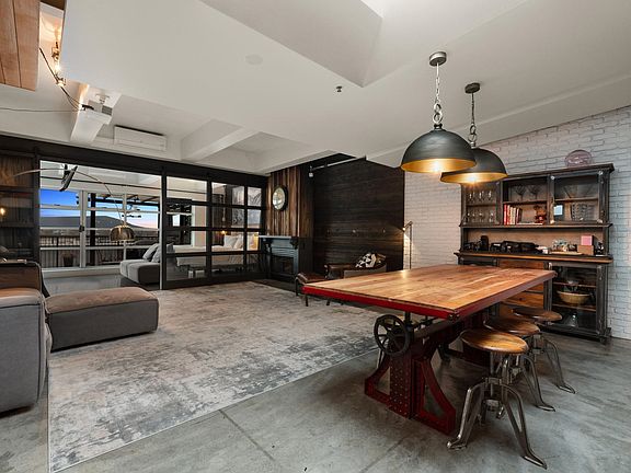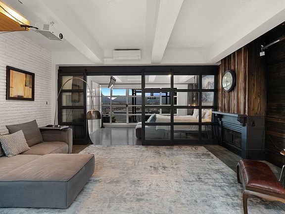 Super sexy NYC style penthouse loft at the coveted Main Space in prime Main Street location. One of the wider floorplans in the building, this top floor renovated unit boasts commanding mountain views from partially covered patio, open concept living, concrete floors, faux-brick walls, over-height ceilings with partial wood treatments, stainless counters + marble backsplash, gas cook top, marble bath w heated floors, custom lighting, large loft bedroom w TV hung from ceiling - super cool, perfect for entertaining! 1 parking. Solid strata. 1 pet okay.