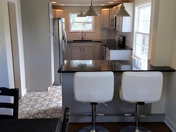 This home has everything you're looking for and more. Pull up to the driveway to find a finished 2 car garage with a brand new roof and a beautiful carriage style garage door on the right and an outdoor pergola on your left. Walk into the finished basement rec room to find brand new floors, a half bath, a wood burning stove and a wet bar. All great for entertaining. Walk up the stairs to the main level where you will see the master bedroom with an en suite bathroom that has double vanities, tile floors, and a tile stand up shower. The living room has the original hard wood floors with a fire place. The kitchen has new stainless steel appliances, tile floors, a kitchen island and granite countertops. Also on the main level is a sunroom with stone floors, fireplace #3