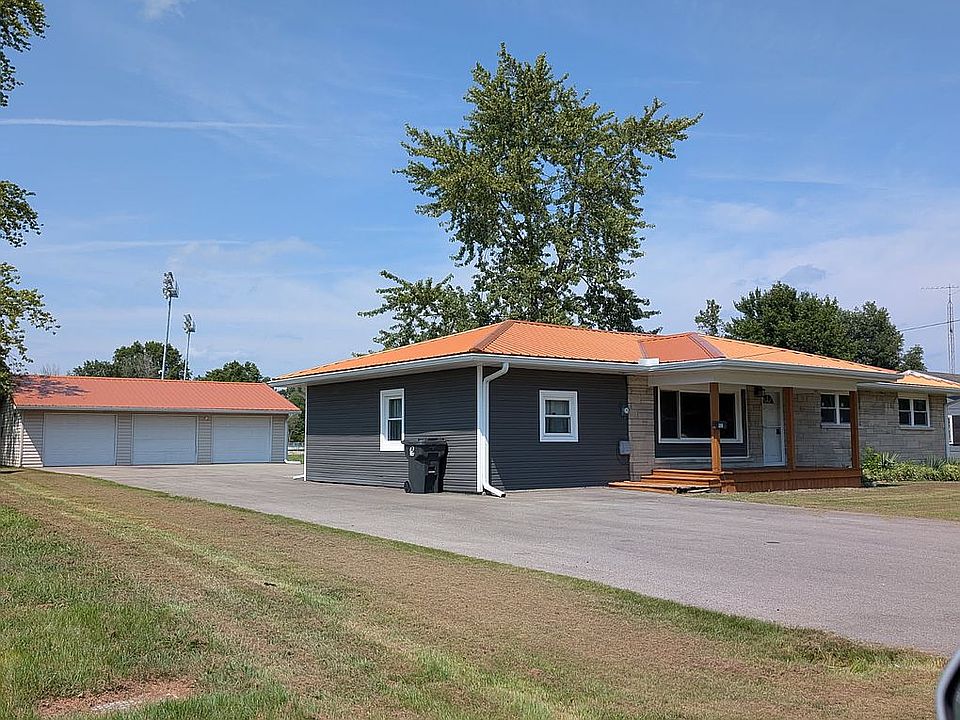 4 bedroom, 2 bath, 1550 SqFt Bedford Stone home, 3 car garage (1 bay is insulated & was used as an office). It has Central A/C, hot water heat with a gas boiler. Lots of renovations done in 2023 & 2024 including: Copper metal roof on house & 3 car garage, added lots of blown-in insulation to attic, huge blacktop driveway, new kitchen cabinets with quartz countertops, both bathrooms updated, new tankless water heater so you will never run out of hot water, new windows & storm doors, new flooring (there are hardwood floors under the new carpet in the living room & 3 bedrooms if you prefer those - I don't. HA!!). Great location next to the C-W High School on a dead-end street. Sinclair-Vidoni (football) Field is right out the back door along with the track/practice field. The Tennis court is just to the west, and I could hit a pitching wedge to the the #1 green at the Casey Country Club golf course from my back yard. Come take a look!!!