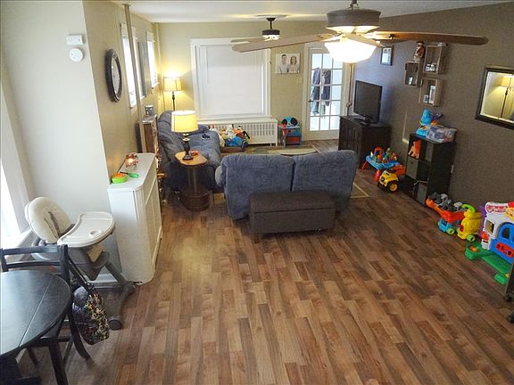 Step inside and feel right at home - Tastefully done twin home with warm colors and high ceilings - Plenty of natural daylight streams in the large rooms - Open living room and dining room with laminate flooring - Flooring extends to remodeled kitchen with plenty of cabinet space, glass top electric stove/oven, microwave and refrigerator included - 1st floor 1/2 bath plus 2nd floor full bath - Gas hot water heat - Newer efficient water heater installed by PPL - Plenty of led lighting - Great enclosed porch plus deck, rear utility room, parking pad and full basement.