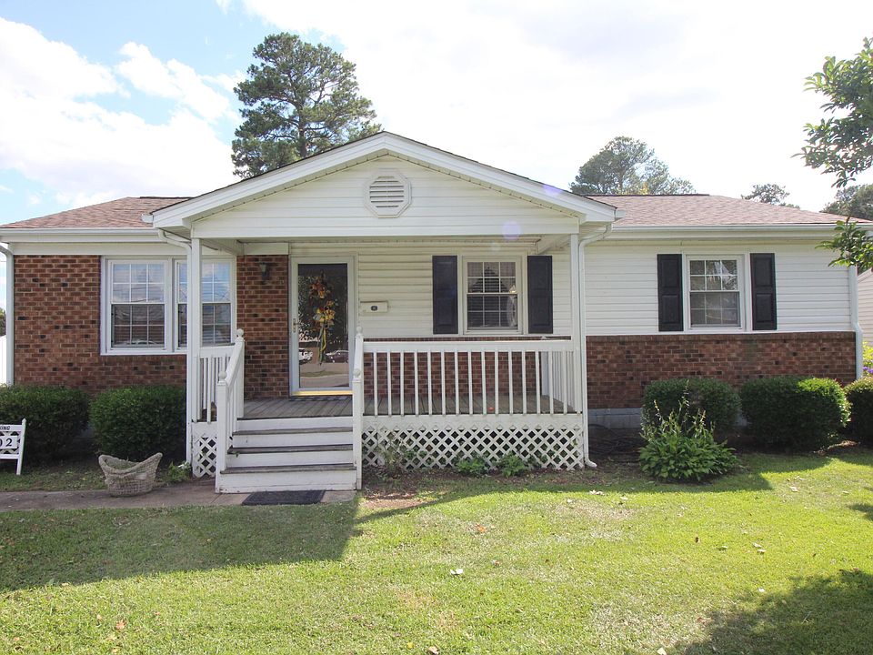 Charming Ranch conveniently located featuring Hardwood Flooring, Crown Molding, Spacious Living/Dining Area. Bright and Airy Kitchen with ample cabinet space, Great Closet Storage, Full Guest Bath and Private En Suite Half Bath. Lovely landscaped yard with Storage Building and Portable Carport. Covered Rear Porch & Patio. Updated Heat/Air & Roof!
