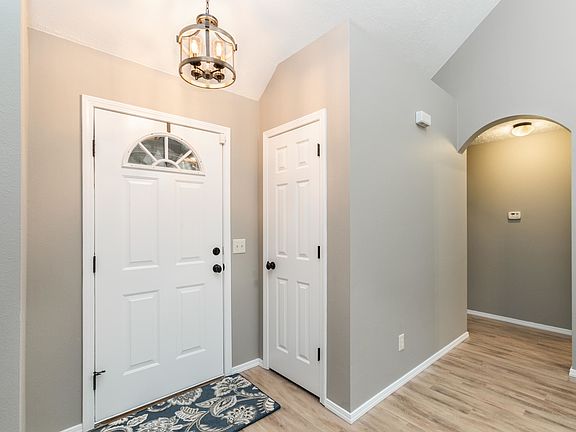 Really lovely remodel including all new flooring throughout the home. Cabinets were professionally painted, new hardware, new butcher block counters, new dishwasher and stove/oven/micro. Custom hall tree built in and additional pantry plus storage closet off kitchen. Master has double sinks, walk in shower, his/her closets, and a jetted tub. Pellet stove will reduce your utility costs. Fourth bedroom is upstairs, perfect for a teenager or at home office. Custom hand rail. Three car garage has tons of storage and the home backs up to Moore Park, no rear neighbors! Neighborhood includes gates at the entrance, pool, trash service and snow removal.