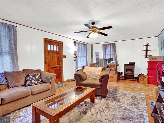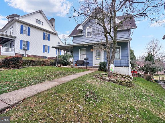 Great 2-story single home in the heart of Birdsboro with 3 bedrooms and 1.5 baths, featuring a large living room, formal dining room, hardwood floors, office area on first level, heated side porch, pellet stove, updated electric, basement with outside egress, a welcoming front porch, and a fenced backyard.
