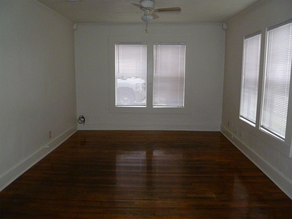 2-1 hardwood floors and tile. Fenced backyard. Available around September 6. One pet considered with approval.