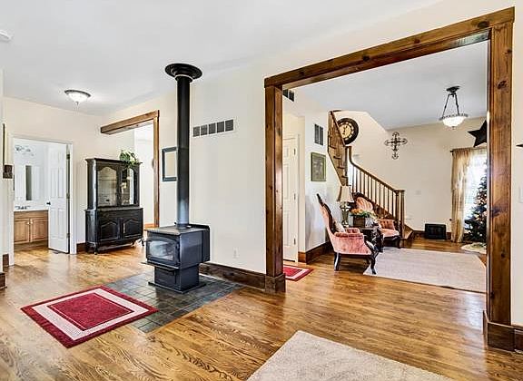 Historic Downtown Wentzville charming & eclectic farmhouse is turn-key - completely renovated inside & out! Adorable gem is full of character: classic vintage décor, original baseboards/millwork, reclaimed hardwood floors, Victorian-style spindled staircase, 9 ft ceilings & cathedral ceilings! Explore updates throughout: remodeled kitchen w/ new black stainless steel appliances, oil-rubbed bronze fixtures, wood-burning stove, updated lighting fixtures/panels. 2nd floor bedroom features full bath + addâl loft/sitting area/office or potential sleeping quarters & ample closet space, new front door, new exterior: Dutch-lap vinyl siding/soffit/facia/gutter/downspouts, stamped concrete patio & porch, 5ft privacy fence, oversized corner lot w/ 50 yr old garden spot, & cedar shed. Structural features: main floor laundry, dual zoned HVAC, & addâl full BR added. Save the best for last: Ultimate Add'l Rec Area in oversized 2car garage-equipped w/ HVAC, kitchen, & rough-in plumbing for future BR.