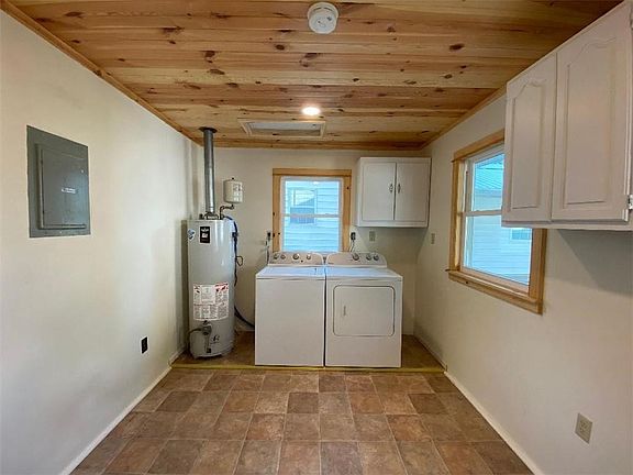 Recently updated two bedrooms, one bath with an open concept and plenty of natural lighting. The beautiful new trim work and unique knotty pine ceilings brings out it's own character. New flooring in the kitchen, living room, bedroom, bath and laundry room. All new plumbing and mostly new wiring. The central air conditioning was added in March of 2020. Replacement windows and new insulation in the walls and attic will help keep those utilities lower. The bathroom was completely remodeled, down to new floor joist and new tub, toilet and sink. Located across from the street from the Fairview Park.