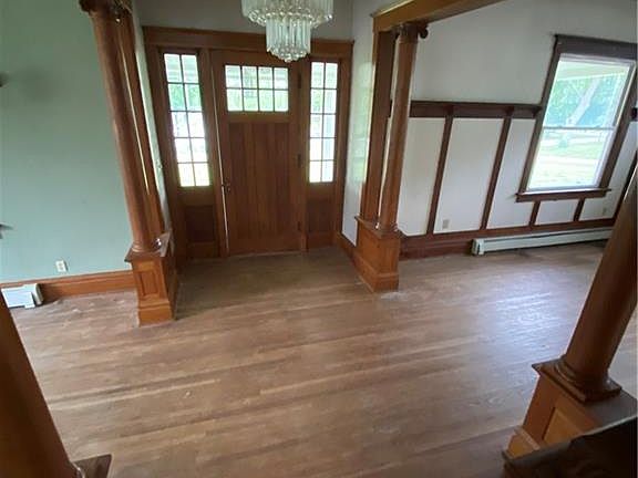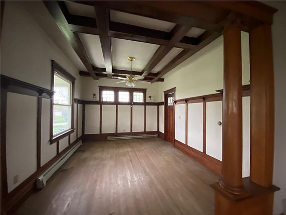 Fantastic opportunity just 15 minutes North of Maryville, MO! Large home with unique, interior details. The formal dining room has a gorgeous, coffered ceiling, plate rail and a stained-glass door to the kitchen. Large living room w/fireplace and wood floors. Open, galley kitchen with large, adjoining hearth room and patio door to the deck. Room next to the kitchen where a 1/2 bath used to be, but all fixtures have been removed and is ready for renovation.
